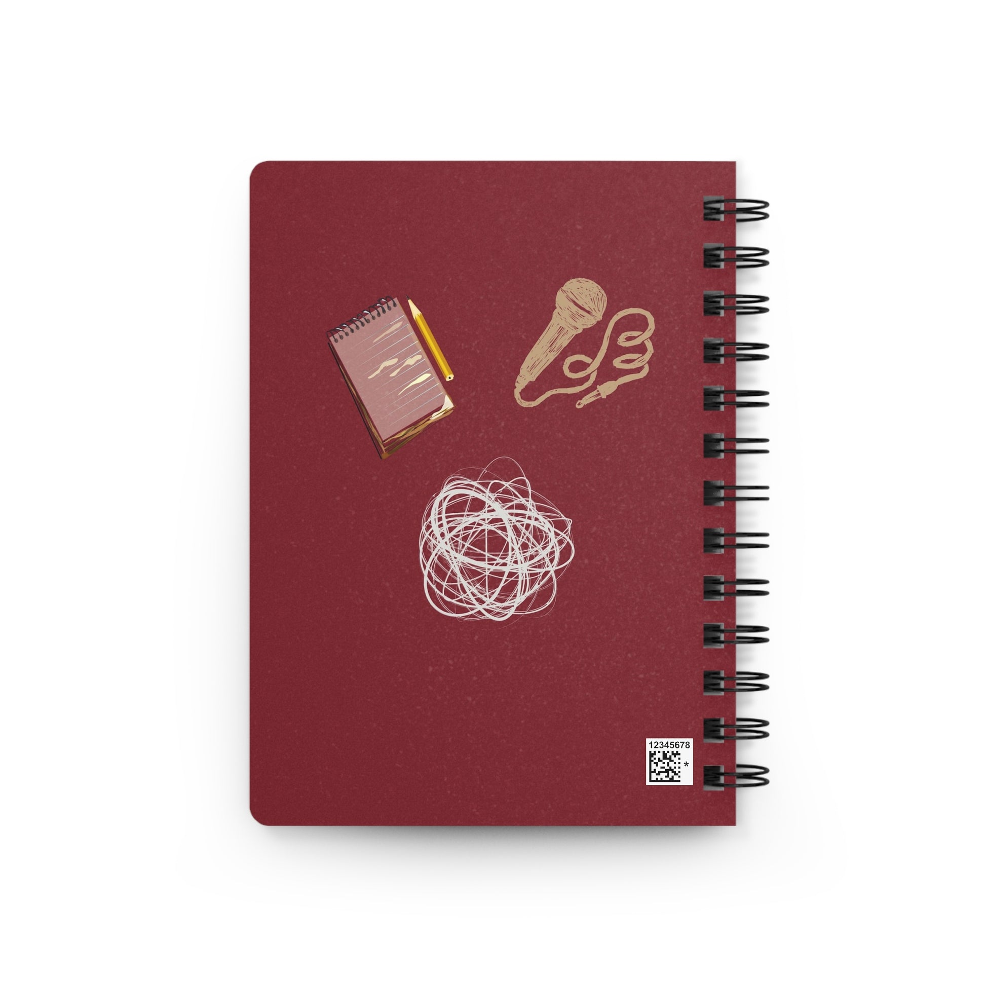 A spiral-bound journal that captures the messy, brilliant storm of creative thought. Rich, glossy covers in deep burgundy showcase playful, collage-style illustrations — a suited figure with a scribbled head, a microphone, and a tiny notepad — giving the notebook personality before you even open it. Inside, 150 lined pages of smooth 90gsm paper invite quick sketches, song lyrics, rehearsal notes, and midnight idea dumps. The black metal spiral lets pages lie flat or be removed cleanly when a thought deserves its own stage. Durable lamination protects the cover through backpacks, studios, and café tables, while vibrant printing keeps colors lively through daily use. A small production barcode sits discreetly on the back cover.
